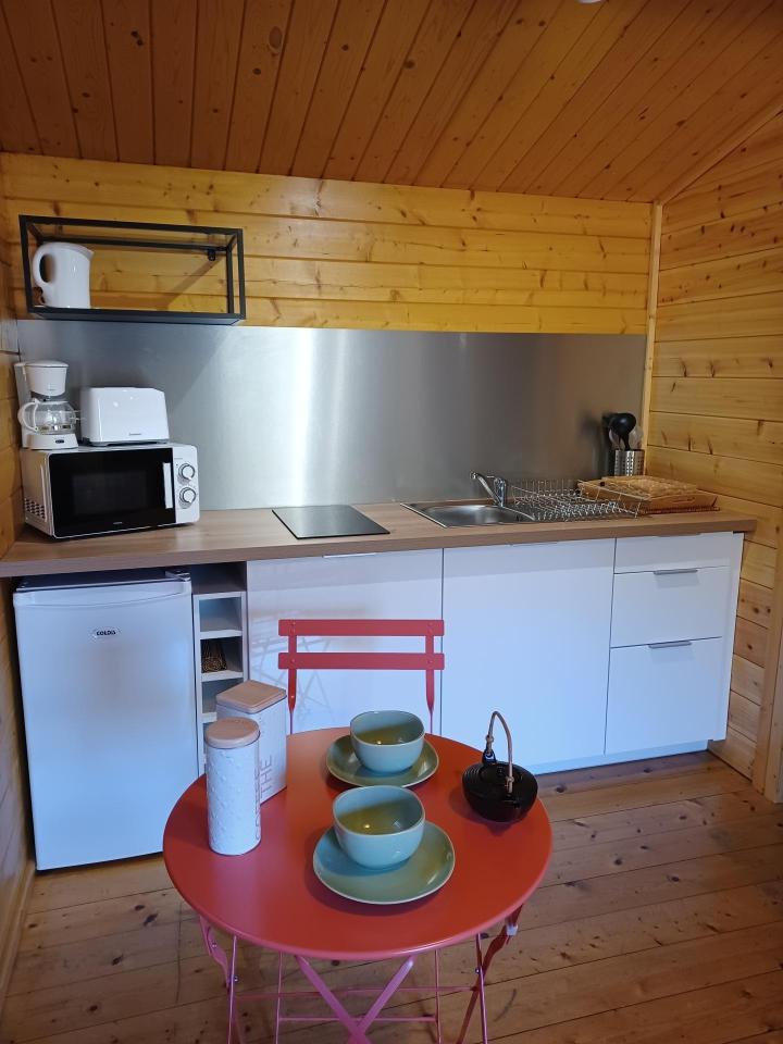 Ce chalet simple et en bois de 20 m² pour 2 personnes, tout confort, vous accueillera.